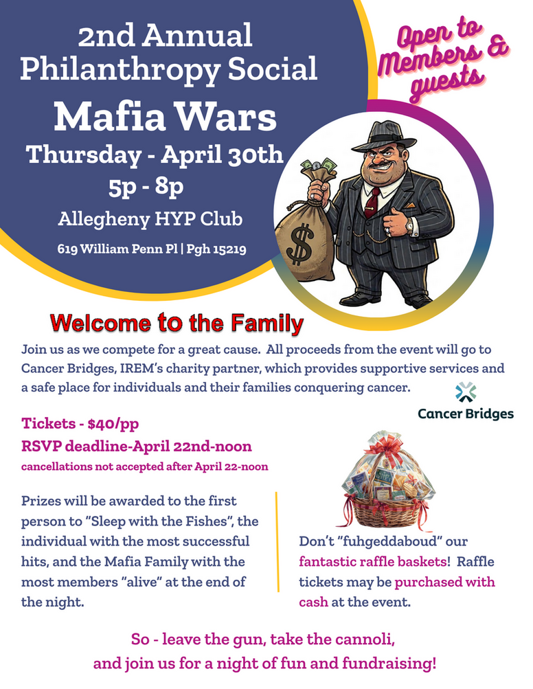 We welcome your suggestions for a speaker/topic or social event you would like to have the Chapter consider - send your suggestions to the Chapter office at IREM7@realtorspgh.com