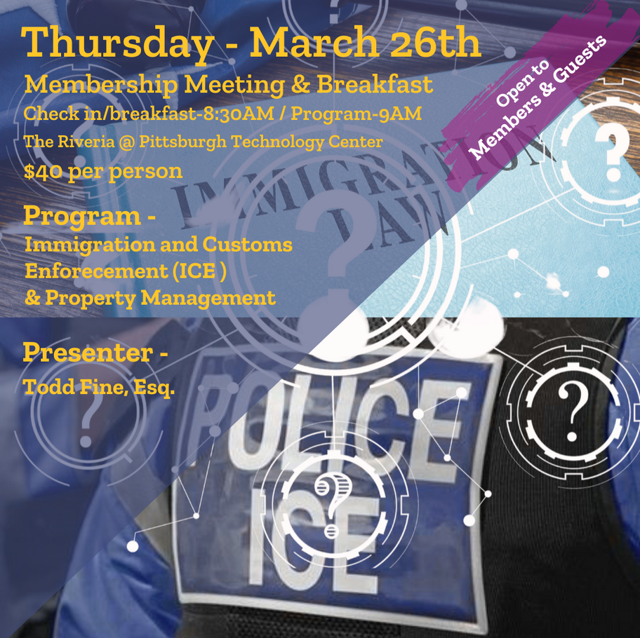 ???? Please feel free to share any questions for the speaker or areas you would addressed ahead of time. Simply email your questions(s) to the Chapter office - IREM7@realtorspgh.com